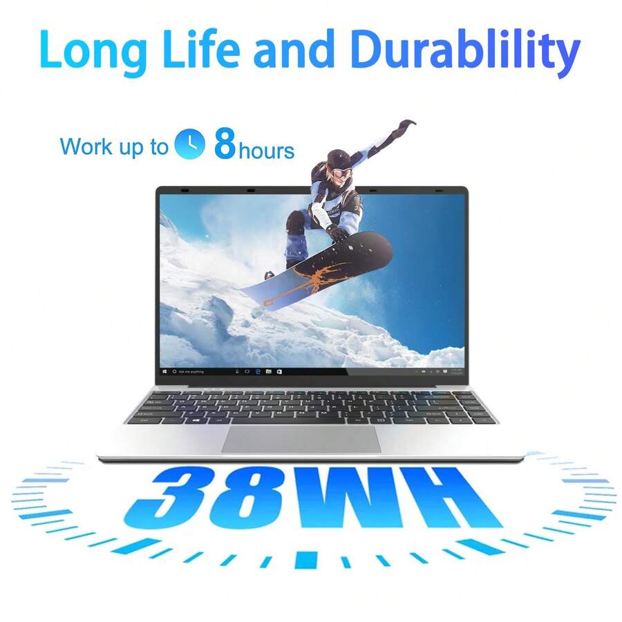 Battery: 5000mAh (38,000mWh), lasts 6–8 hours