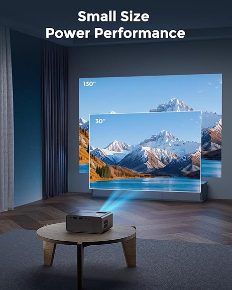 - 【Smallest and Portable Mini Projector】Weighing just 0.52 kg and sized at 5.5×2.36×4.33 inches, this pocket-sized projector seamlessly transitions between home cinema nights, outdoor movie campouts, business presentations, gaming sessions, fitness tutorials, travel entertainment, and pop-up events—delivering crisp big-screen magic anywhere with wireless connectivity and universal compatibility. (NOTE: No Battery Included in projector)